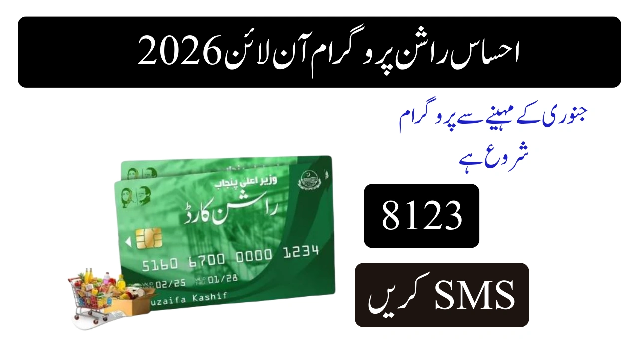 میں اپ کو ایک نئی اپڈیٹ دینے جا رہا ہوں کہ احساس راشن پروگرام آن لائن 2026 شامل ہونے کا طریقہ کار بہت اسان ہے اس میں ان لائن  کی مدد سے اپ اپنے گھر انے کی اہلیت بھی جان سکتے ہیں کہ  آپ نے سب سے پہلے اپنے13 لفظوں کے ائی ڈی کارڈ نمبر 8123 پر میسج کر کے جوابی کاروائی میں آپ کو ایک تصدیقی پیغام حاصل ہوگا جو آپ کو اپ کے گھر انے کی اہلیت کے معلومات بتائے گا یا اپ اپنے قریبی راشن سینٹر میں جا کر بھی احساس راشن حاصل کر سکتے ہیں اور یہ پروگرام ان خواتین کے لیے بنایا گیا ہے جن کو راشن کی ضرورت ہے